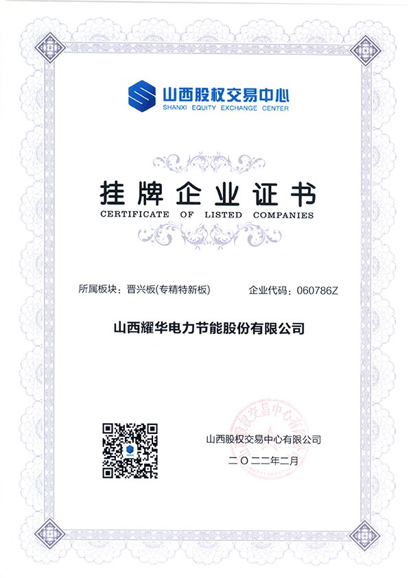 山西耀華電力節(jié)能股份有限公司是國內(nèi)第一家提出谷期電集中儲能蓄能的高新技術(shù)企業(yè),其主營業(yè)務(wù):電力市場購售電交易運營、電力設(shè)施安裝檢測運維、 低谷電采暖設(shè)備的研發(fā)、生產(chǎn)、安裝、銷售及運行服務(wù)于一體。公司成立于1996年,落座于山西省太原市,現(xiàn)有股權(quán)代碼在晉興板上市的專精特新企業(yè),中國建設(shè)科技自主創(chuàng)新優(yōu)勢企業(yè),山西省節(jié)能協(xié)會理事單位,擁有自主知識產(chǎn)權(quán),獲得國家多項專利,參編了電采暖國家標(biāo)準(zhǔn)(JC/T60008-2021)和主編了山西省地方標(biāo)準(zhǔn)(DBJ04/T291-2012)。擁有國家發(fā)明專利11項,軟件著作權(quán)6項。其中“大數(shù)據(jù)遠(yuǎn)程集中監(jiān)控運維服務(wù)平臺”早在2019年就在河北、天津、山西等多個煤改電地區(qū)投入試用,節(jié)能效果非常顯著,運維方便快捷,用戶滿意。